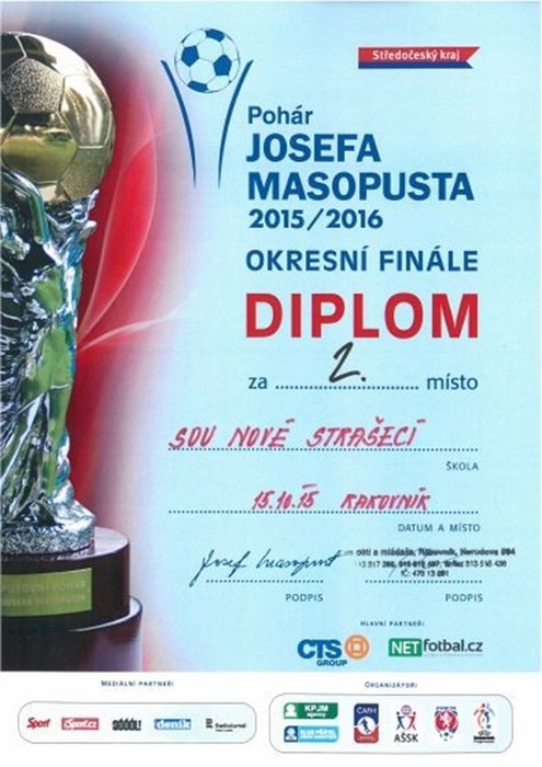 Všech sedmnáct hráčů i přes vytrvalý déšť podalo skvělý výkon. Vítězné góly střílel Miroslav Slezák a zajistil tak skvělé 2. místo pro tým SOU v celém turnaji. Diplom a pohár přibyly do vitríny k dalším trofejím dokazujícím sportovní úspěchy reprezentantů učiliště.