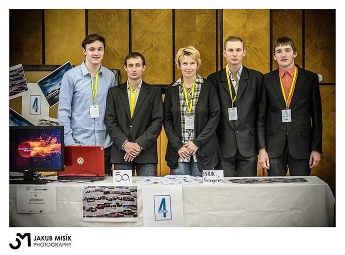 Jednou ze tří studentských firem na naší škole je 4Engines, zabývající se výrobou a prodejem přebíjecí karetní hry. Karty si studenti sami vytváří - design, tisk, laminaci i výrobu obalových krabiček. V každé krabičce je celkem 10 náhodných automobilových karet, kde jsou vedle názvu a fotky auta uvedeny následující údaje: výkon, rok výroby, obsah motoru, max. rychlost a zrychlení z 0 na 100km/hod. Celá tato sada včetně návodu na tři různé hry je prodávána za 50,- Kč. Záleží na jednotlivci, kolik krabiček s kartami si bude chtít koupit.