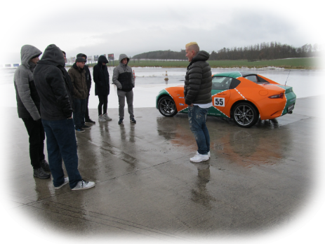 Po teoretické části byli žáci rozděleni do skupin a mohlo se tak přejít k části praktické. Ta byla vedena formou stanovišť, kde se studenti po skupinách střídali a vyzkoušeli si určité situace z teoretické části přímo v autě na místním POLYGONU. Vlastníci ŘP dokonce mohli auta řídit a vyzkoušet si tak aktivity sami na vlastní kůži.